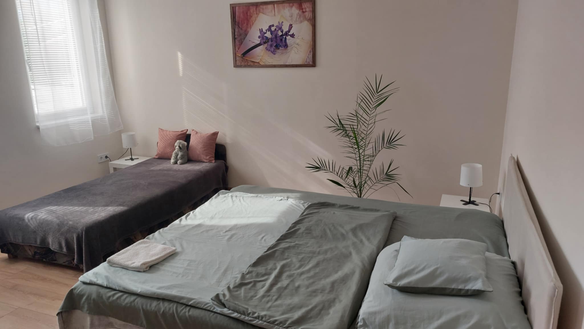 Az apartman hat fő részére biztosít kényelmes pihenést, egy teljesen új franciaágy új matracokkal, egy heverő és egy pótágynak minősülő új kihúzható kanapé várja vendégeit a nagyszobában, egy szintén új franciaágy pedig a kisszobában.