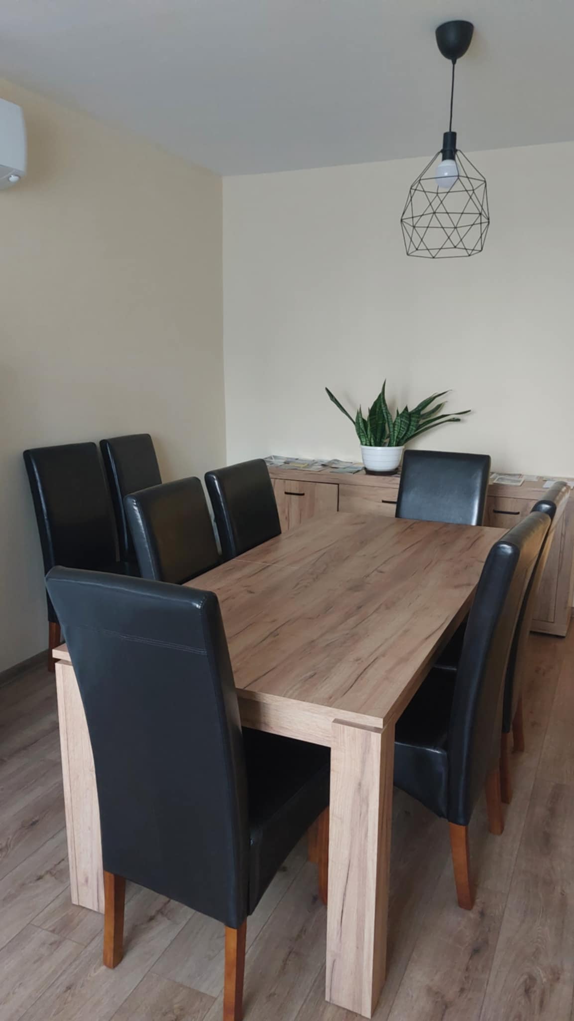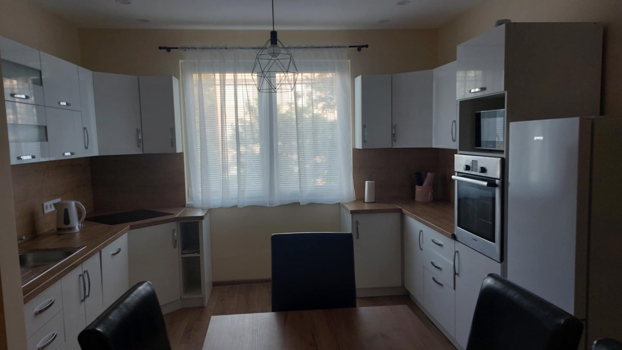 További felszereltségek közé tartozik a nagy étkezőasztal, amely köré mindenki kényelmesen elfér, hűtőszekrény, mikrohullámú sütő, mosogatógép, sütő, főzőlap, vízforraló, konyhai eszközök.